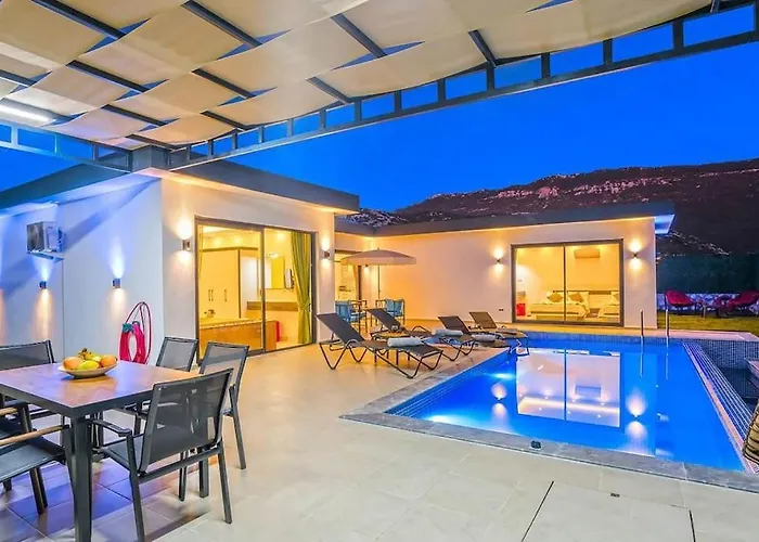 Вилла Villa Ortac 1 Doga Icerisinde, Korunakli Villa с патио, а также открытым бассейном, расположена в Каш. Здесь гостей ожидают 2 ванные комнаты, 2 спальни и оснащённая всем необходимым кухня.